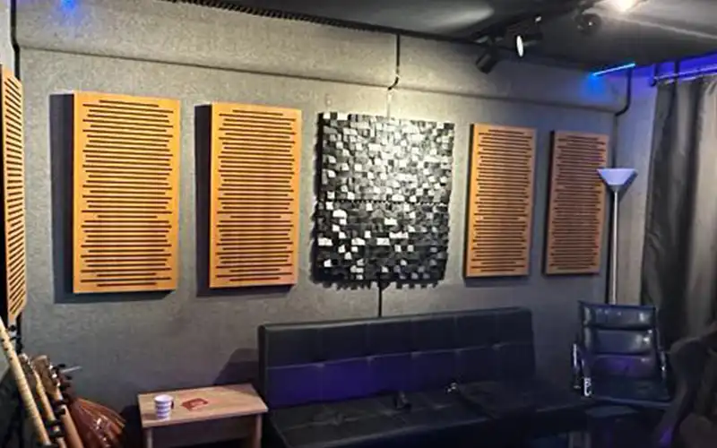 Siyah Malzeme Akustik Sünger Üstü Ahşap